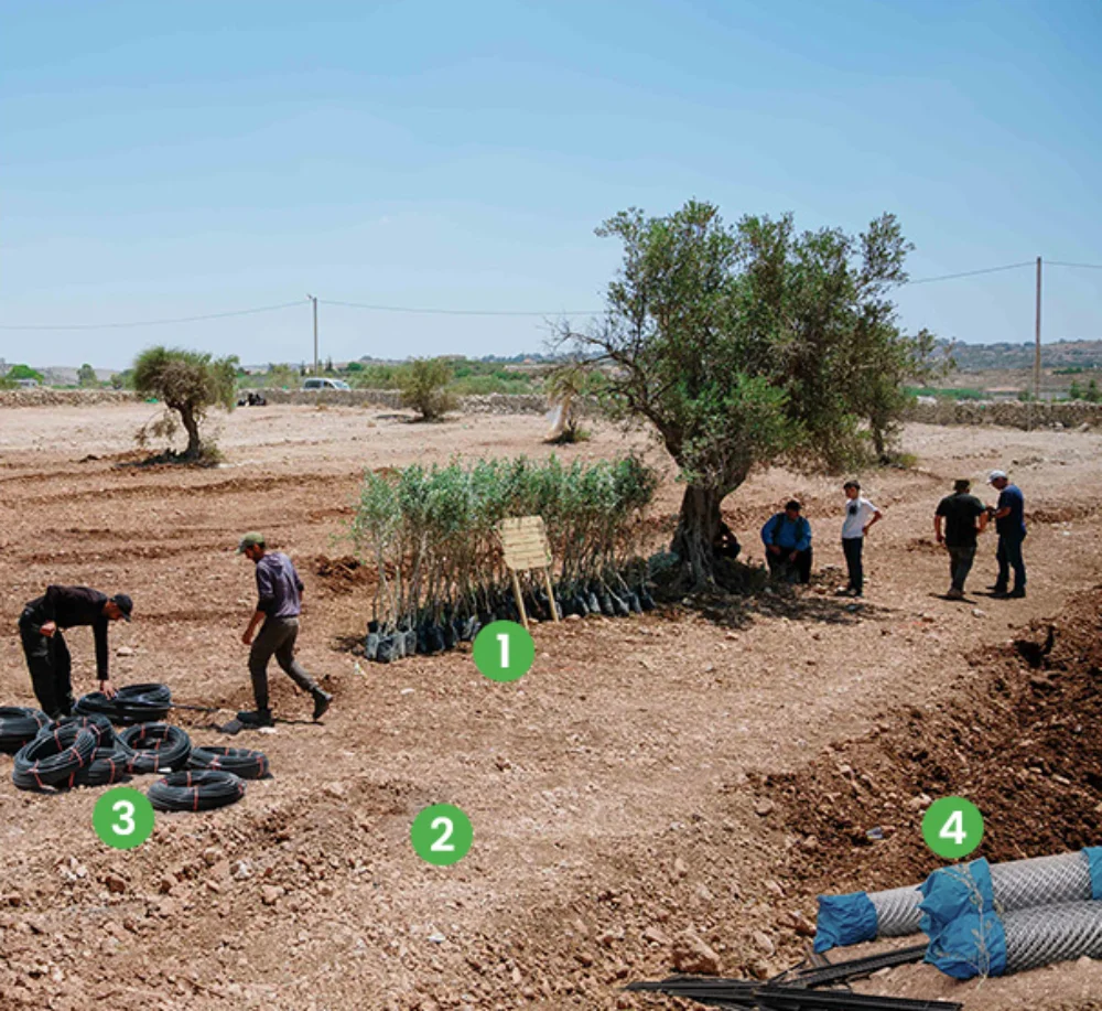 We partner with the Palestinian Farmers Union to plant sustainable olive tree groves that support families. Half are planted for women.